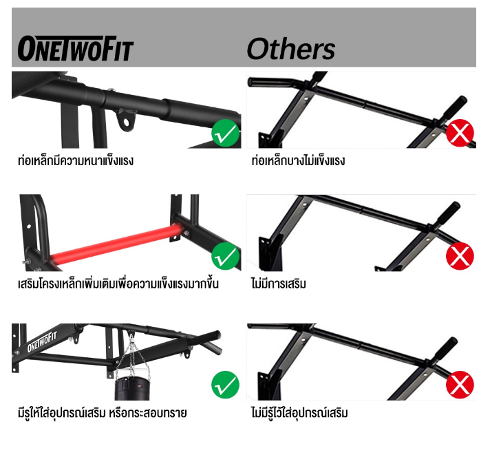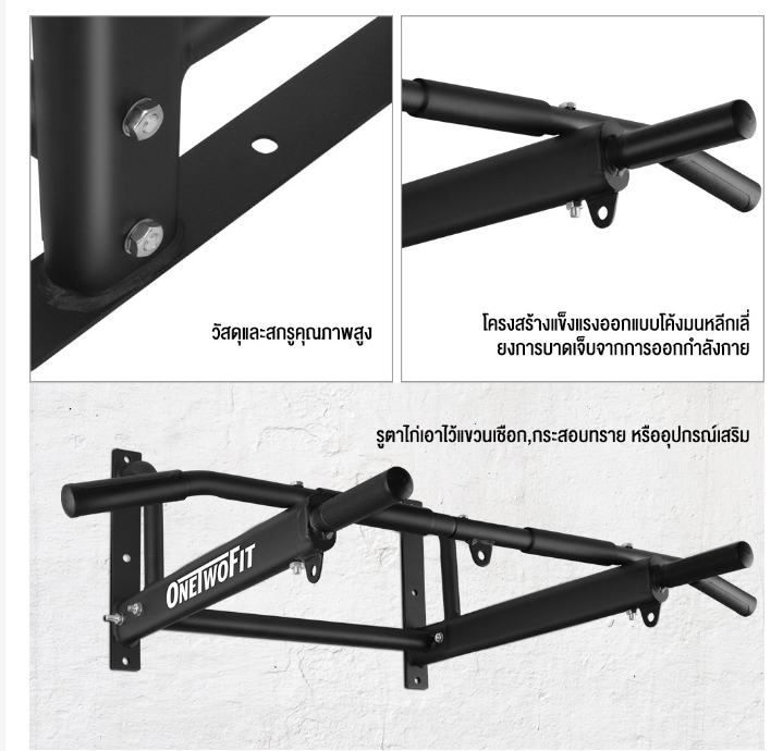 ยินดีต้อนรับสู่ร้านค้าแบรนด์ OneTwoFit บาร์แบบดึงขึ้นติดผนัง OneTwoFit นี้ช่วยให้คุณออกกำลังกายได้ทั้งตัวเพื่อให้บรรลุเป้าหมายการออกกำลังกายของคุณได้อย่างง่ายดายและมีประสิทธิภาพ เป็นวิธีที่ง่ายและมีประสิทธิภาพในการเสริมสร้างความแข็งแกร่งให้กับร่างกายส่วนบนทั้งหมดในบ้านของคุณเอง