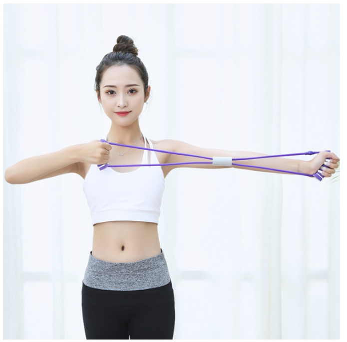 1. จับปลายทั้งสองของตัวปรับความตึงด้วยมือ ขา และไหล่ออกจากกัน ความตึงเครียดขนานกับหน้าอก แขนข้างหนึ่งจะค่อย ๆ ขยับระยะห่างจากหน้าอก ยืดตัว หยุดครู่หนึ่ง และค่อย ๆ ผ่อนคลายแขนเพื่อฟื้นฟูความตึงเครียด พยายามอย่าเข้าใกล้หน้าอกมากเกินไปในระหว่างขั้นตอนทั้งหมดเพื่อไม่ให้บีบหน้าอก แบบฝึกหัดนี้เป็นวิธีที่ดีในการบริหารหน้าอก ลูกหนู และไหล่