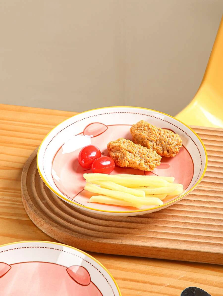 จาน 1 ชิ้น ลายการ์ตูน ลายสัตว์ ทรงกลม ff-33