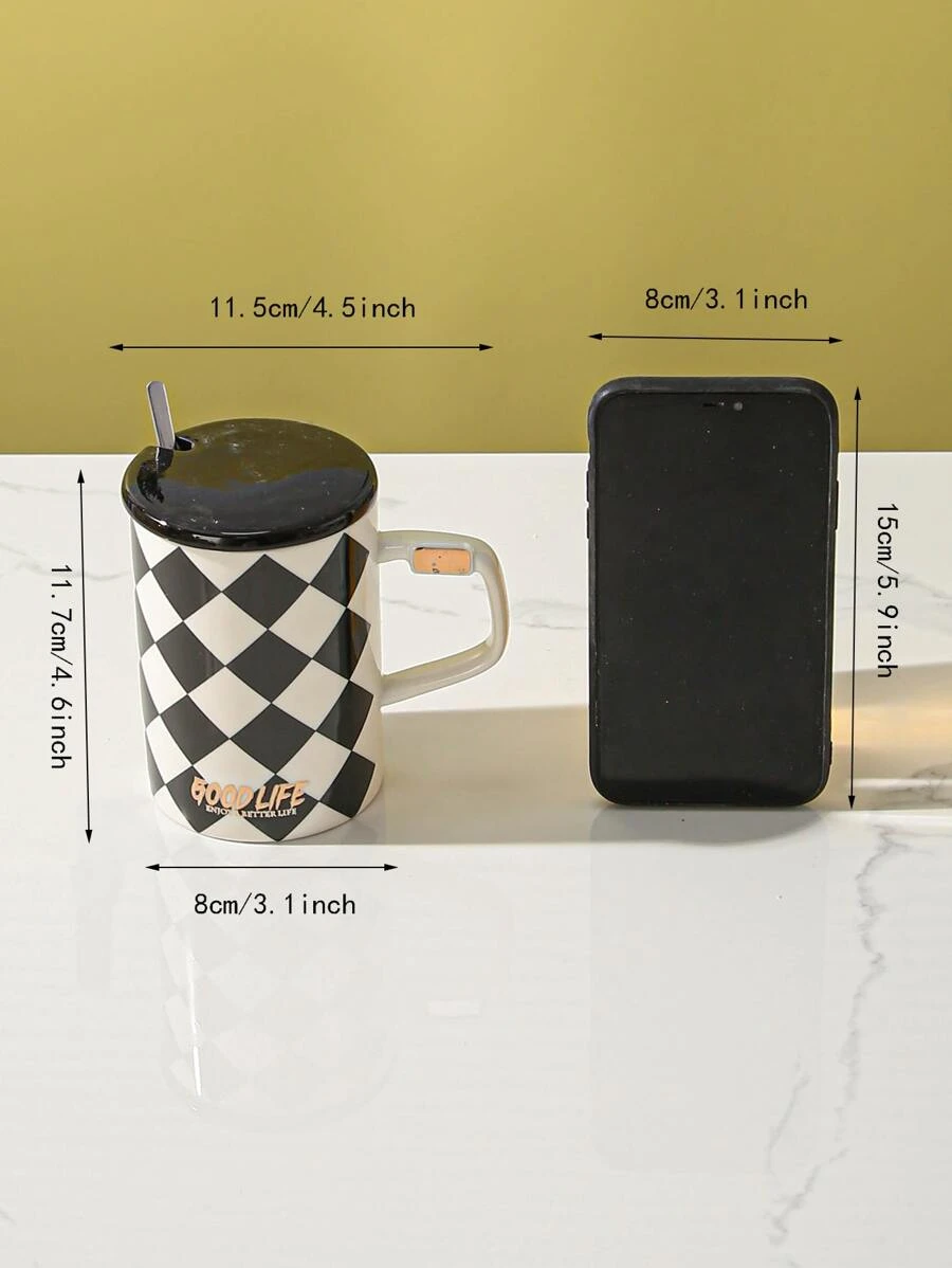 แก้วมัค 1 ชิ้น ลายตัวอักษร และ ช้อน 1 ชิ้น oo-105