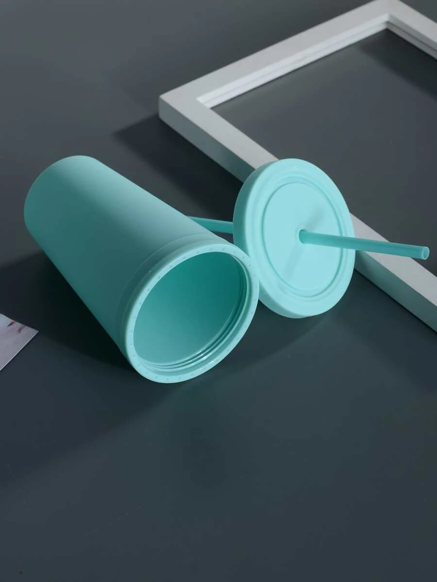 แก้วพกพา 1 ชิ้น 450ml แบบพกพา พลาสติก แก้วเก็บความเย็น ลายเรียบง่าย สีเขียว สำหรับ ในที่ร่ม และ กลางแจ้ง pp-26
