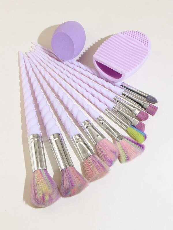 แปรงแต่งหน้า 10 ชิ้นฟองน้ำ 1 ชิ้นและเครื่องมือทำความสะอาด 1 ชิ้น e-26