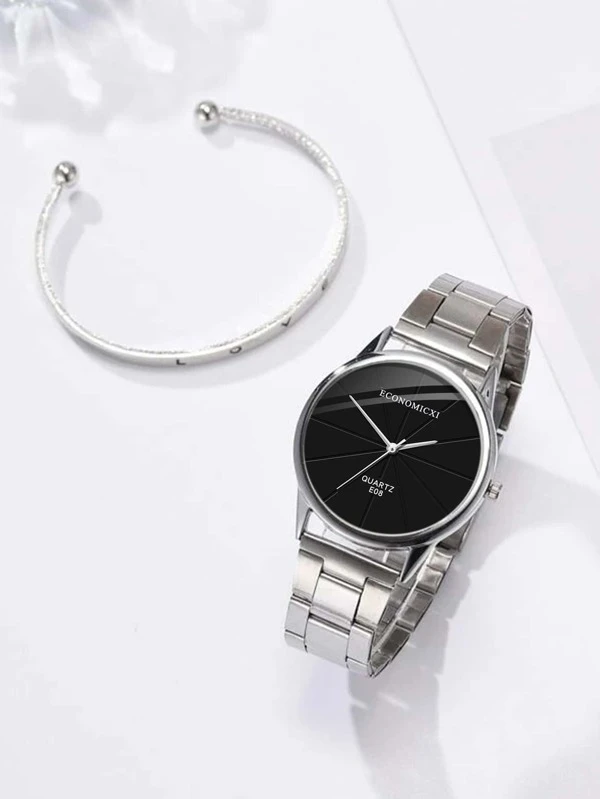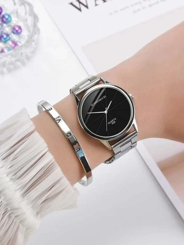 นาฬิกาควอตซ์ตัวชี้กลม 1pc และสร้อยข้อมือ 1pc น-44