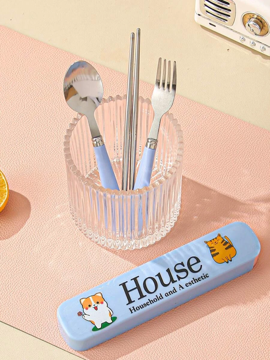 เซตอุปกรณ์ทานอาหาร 3 ชิ้น ลายแมว และ ลายตัวอักษร และ กล่อง 1 ชิ้น hh-20