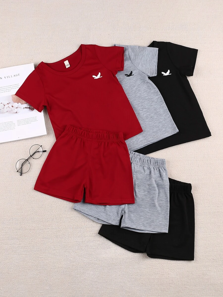 เด็กผู้ชาย 3 ชิ้น เสื้อยืด ลาย สัตว์ & 3 ชิ้น กางเกงขาสั้น b-62