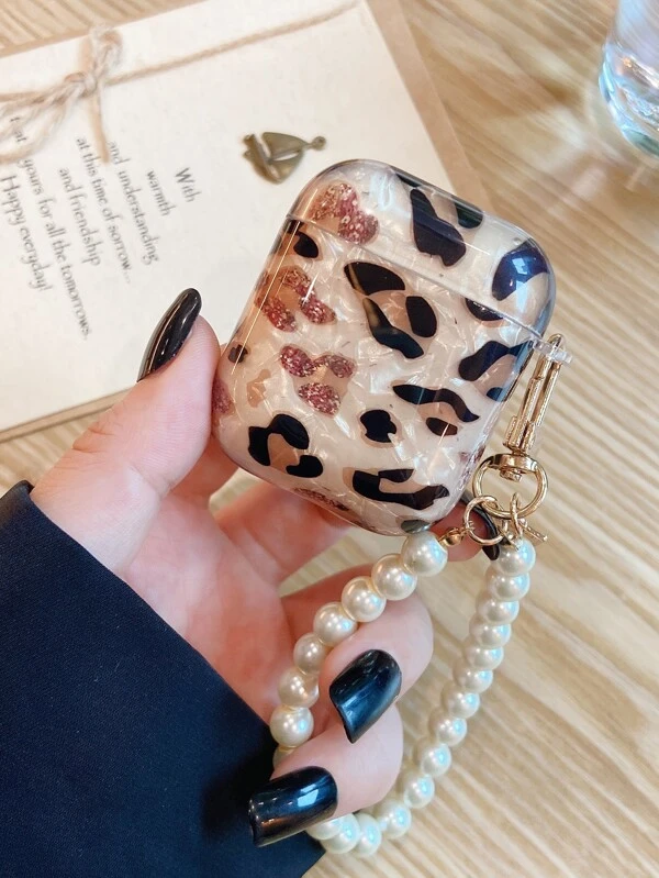 จี้มุกเทียมซองหนัง AirPods พิมพ์ลายเสือดาว e-92