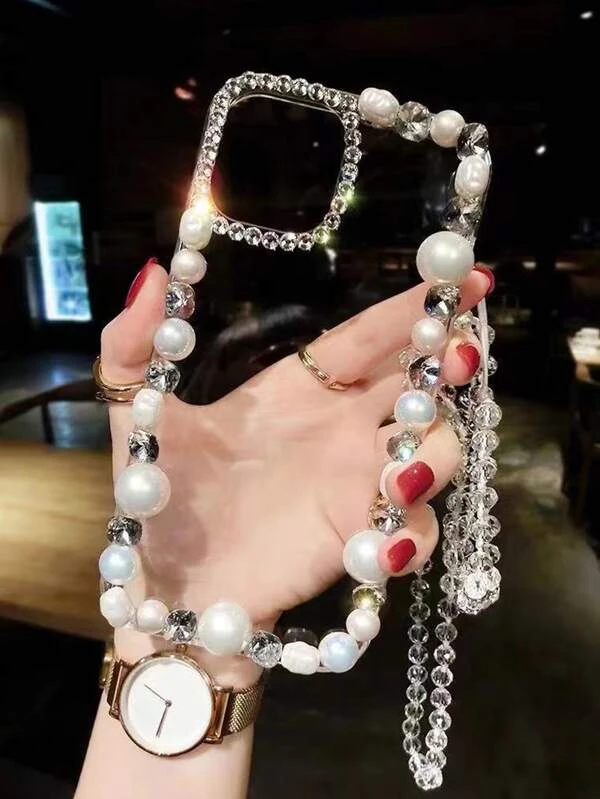 เคสโทรศัพท์มือถือประดับมุกเทียมพร้อมสายคล้อง c-99