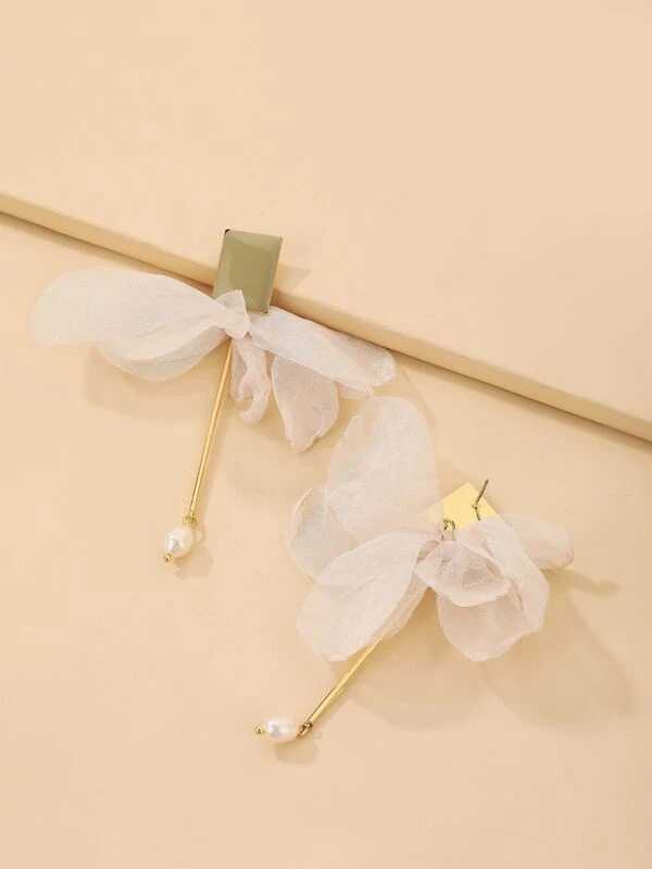 ต่างหูประดับโบว์ประดับมุกเทียมและผ้า e-90