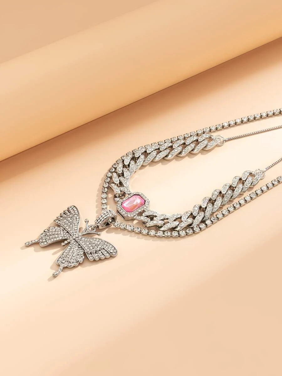สร้อยคอผีเสื้อ Rhinestone 2 ชิ้น kk-170