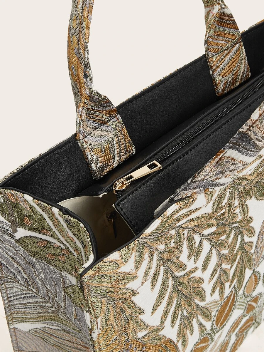 กระเป๋าโท้ทพิมพ์ลายใบไม้ v-10