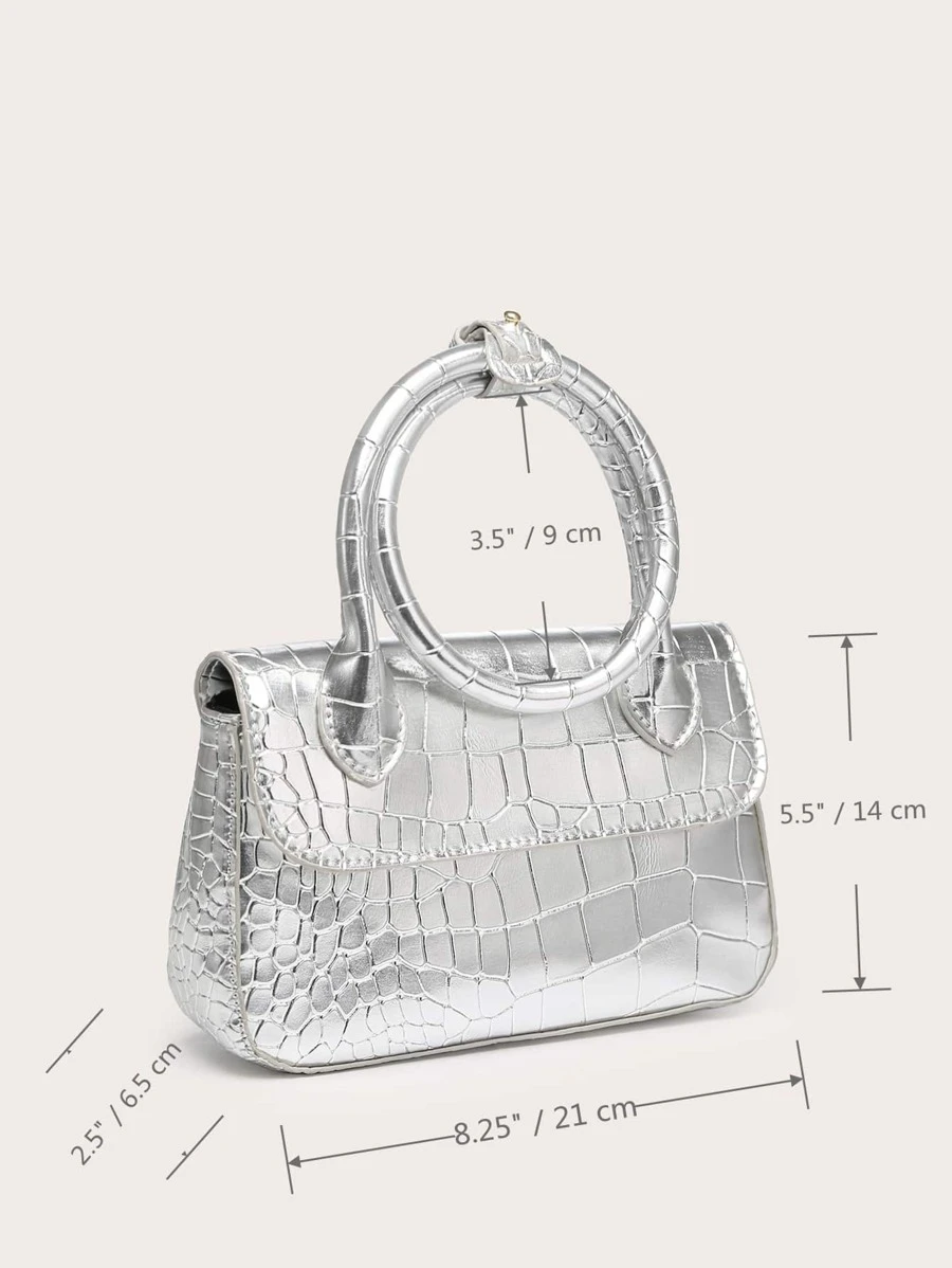กระเป๋าทรงสี่เหลี่ยมลายนูนจระเข้ v-46