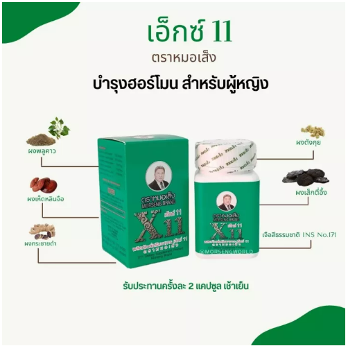 ส002 สมุนไพรหมอเส็งว่านชักมดลูก เอ็กซ์ 11 (ชนิดแคปซูล) ของแท้ [100%]®