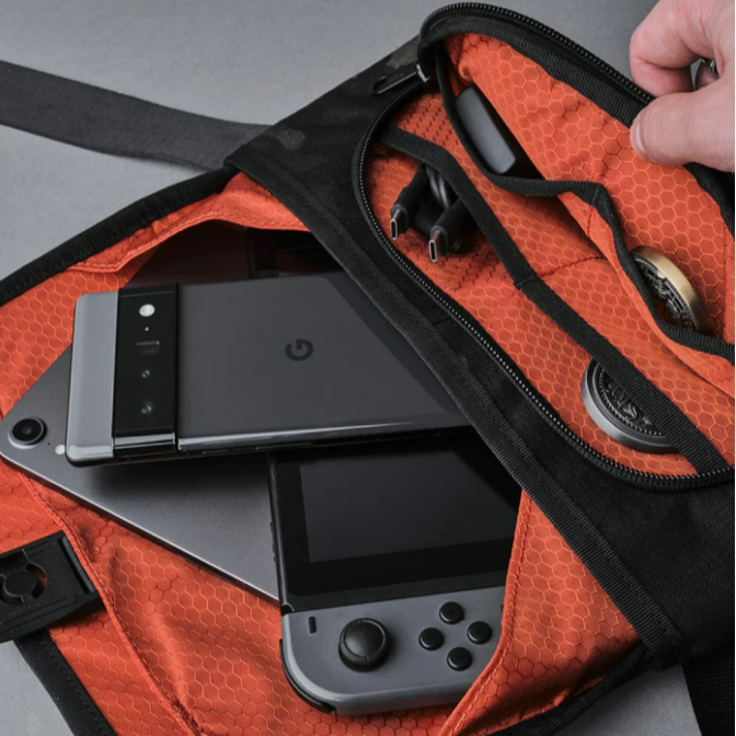 Go hands-free and keep your pockets empty with this compact, yet functional sling bag.