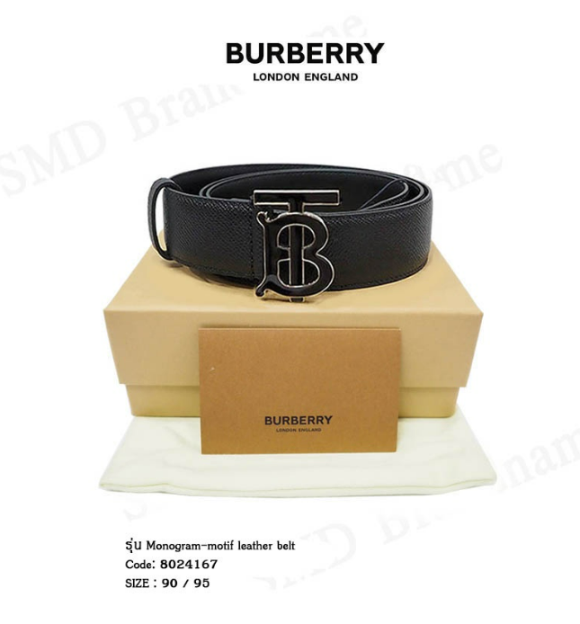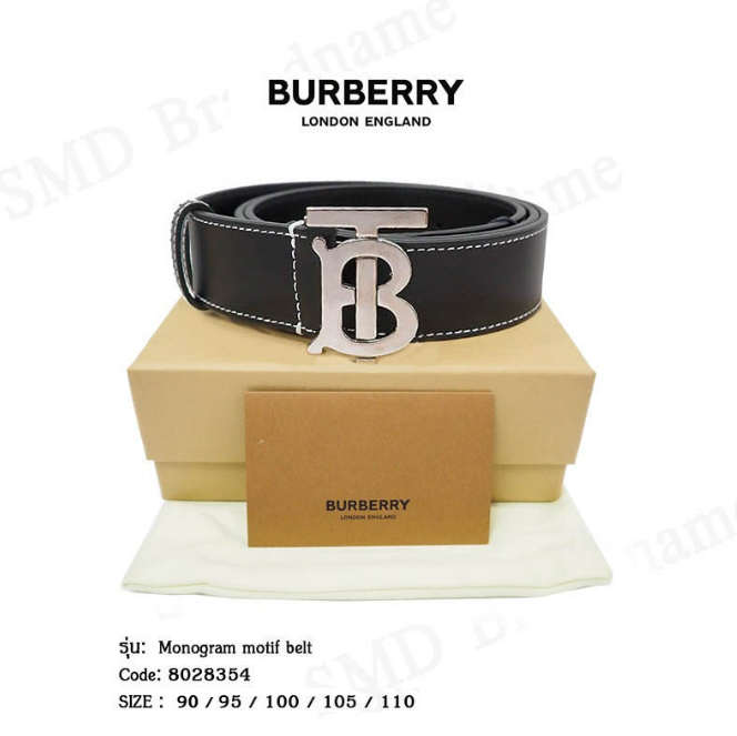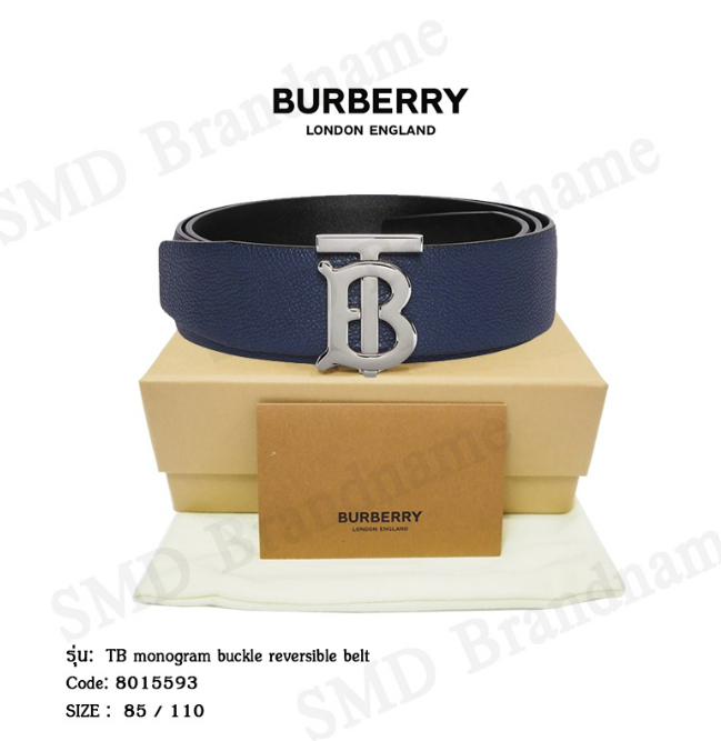 - หัวเข็มขัดทรงสี่เหลี่ยม สลักชื่อแบรนด์ BURBERRY