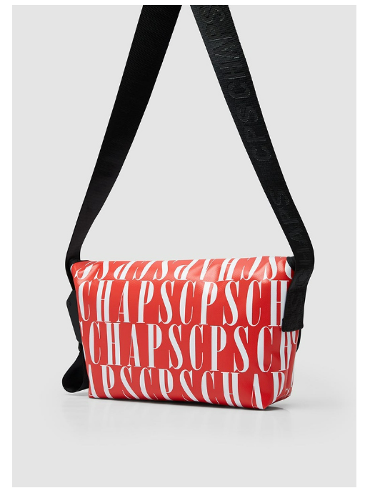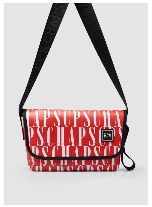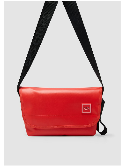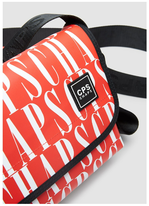 กระเป๋าสะพายข้างพร้อมสายสะพายปรับระดับได้ โลโก้ CPS CHAPS ที่ด้านหน้าและฝาปิดแบบปิด
