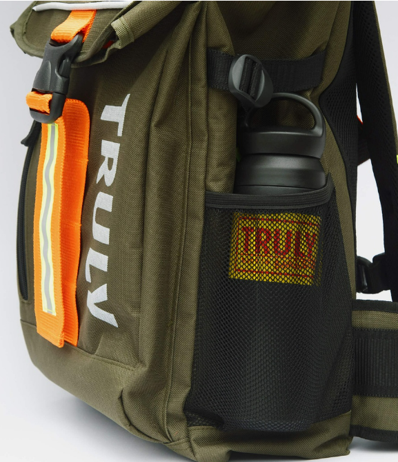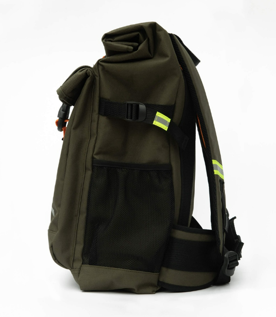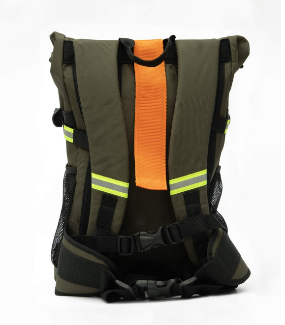 เป้แบกสีเขียวคาดส้ม ได้ Inspiration จากเสื้อหน่วยกู้ภัยที่มีแถบสะท้อนแสง คาด คู่สีนี้เท่ ดูลุย ดูปลอดภัย ดูธรรมชาติ ดูเป็นมิตร