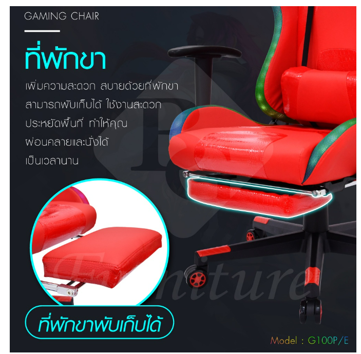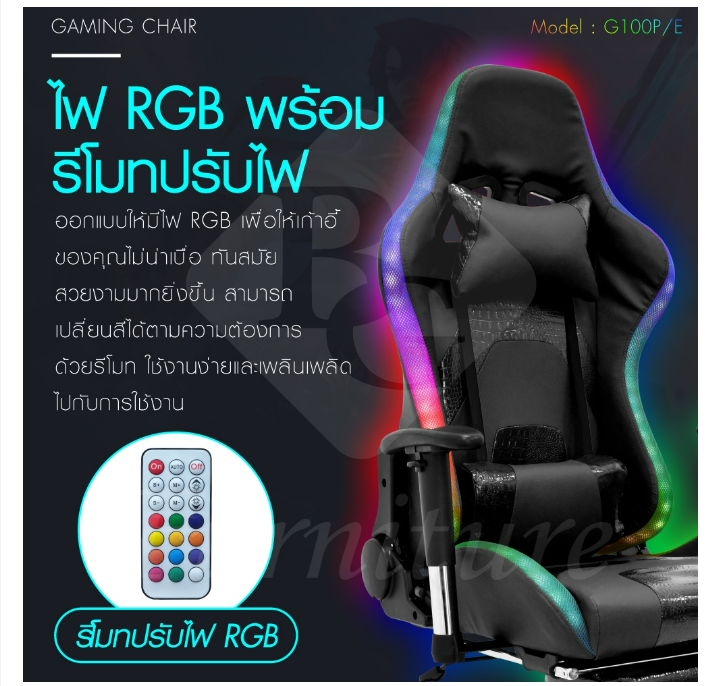 ออกแบบให้มีไฟ RGB เพื่อให้เก้าอี้ไม่น่าเบื่อ ทันสมัย เปลี่ยนสีด้วยรีโมท