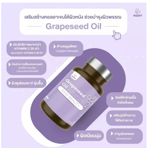 Specifications of NEW!! 1แถม1 สารสกัดจากเมล็ดองุ่น Grape Seed เพิ่มความแข็งแรงของหลอดเลือด บำรุงผิว ผิวใส ผิวเนียนใส บำรุงผิวกระจ่างใส NEW INZENT