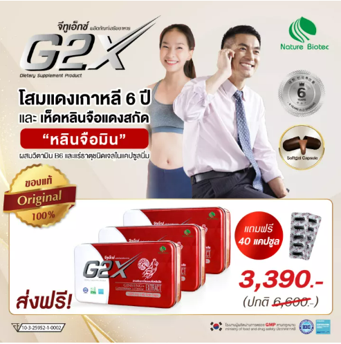 ส045 NATURE BIOTEC เนเจอร์ไบโอเทค / G2X จีทูเอ็กซ์ (60 แคปซูล) 3 กล่อง : แถมฟรี 40 แคปซูล โสมแดงเกาหลีผสานเห็ดหลินจือแดง มาตรฐานประเทศเกาหลี