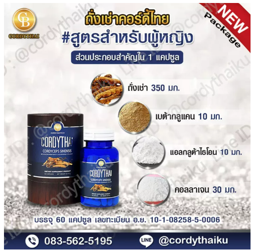 Product details of ส่งฟรี⚡ Cordythai ถั่งเช่าคอดี้ไทย สูตรใหม่ บรรจุ 60 เเคปซูล (โปร3แถม1) เลือกสูตรชาย-หญิงได้ 4 กระปุก ฟรี Power Bank E12 และ กระปุกตัดยา3in1