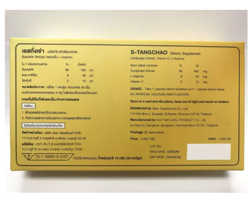 Specifications of ถั่งเช่า ถั่งเช่าทิเบตสกัด แบรนด์เอสถั่งเช่า 30 แคปซูล ชุด 3 แถม 3 (180 แคปซูล) มีถั่งเช่าทิเบตสกัด & วิตามินซี