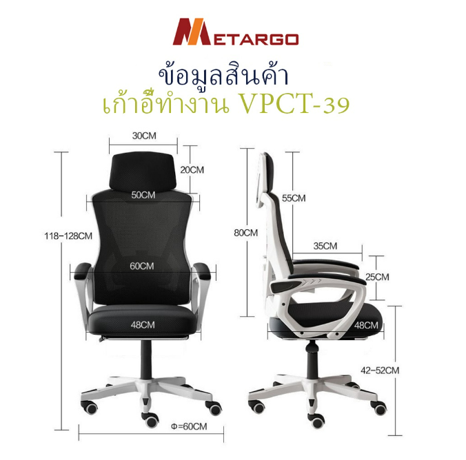 ?ขนาดสินค้าโดยรวม : กว้าง 60 x ลึก 48 x ปรับความสูงได้ 118-128 ซม