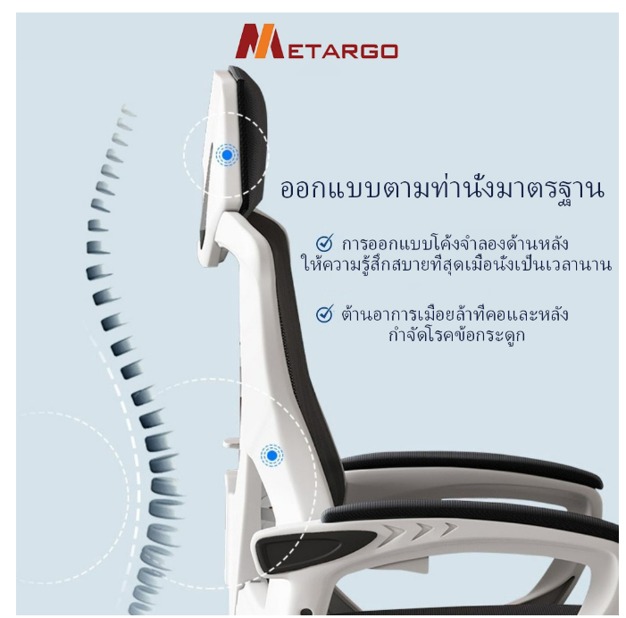 ?พนักพิงแบบโค้ง เก้าอี้ถูกออกแบบตามหลักสรีระศาสตร์ รองรับกับแผ่นหลัง ไม่ปวดเมื่อย
