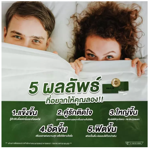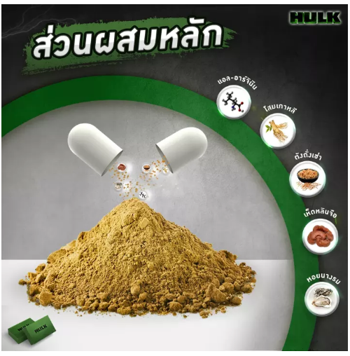 ผลิตภัณฑ์ HULK ผลิตจากสมุนไพร ที่คัดสรร มาเพื่อคุณผู้ชายโดยเฉพาะ ไม่ก่อให้เกิดผลข้างเคียง การันตีความปลอดภัย ผ่านการตรวจการ GMP ถูกต้องตามกฎหมาย อย.เลขที่ 1210815850084