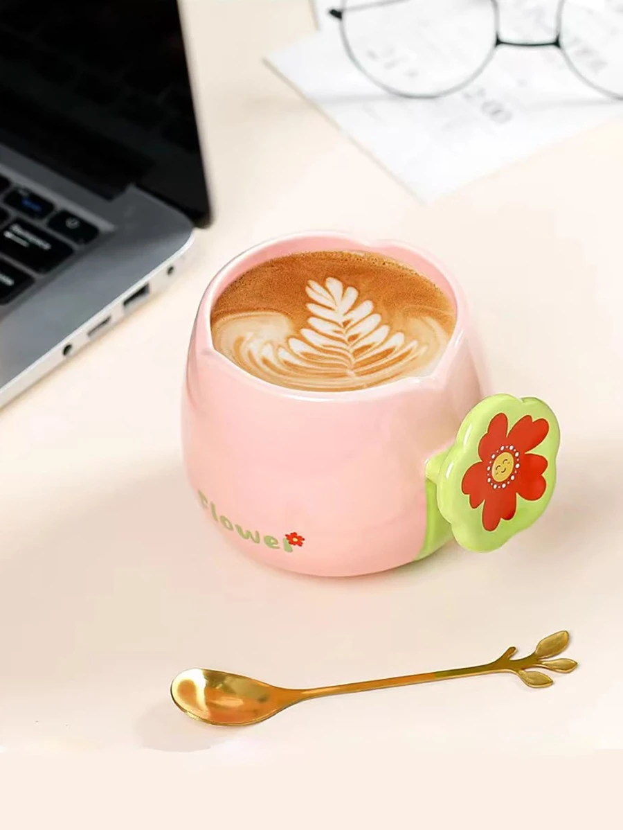 1 ชิ้น ใบไม้ & ลาย ดอกไม้ แก้วมัค & 1 ชิ้น ช้อน oo-178