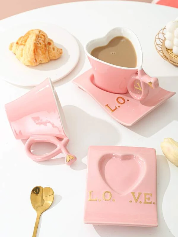 1 ชิ้น แก้วมัค ออกแบบ หัวใจ & 1 ชิ้น จาน oo-100