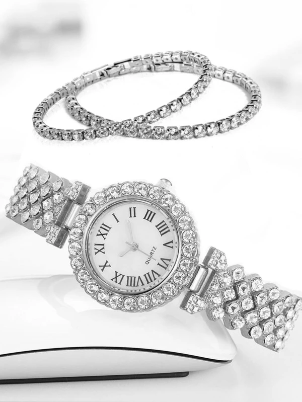 1 ชิ้น ประดับแก้วสี นาฬิกาข้อมือ & 2 ชิ้น สร้อยข้อมือ น-0175