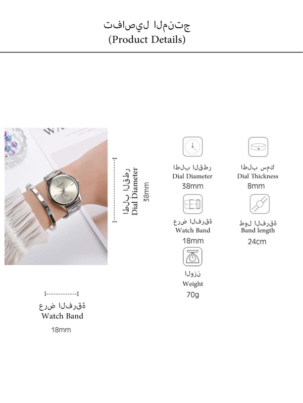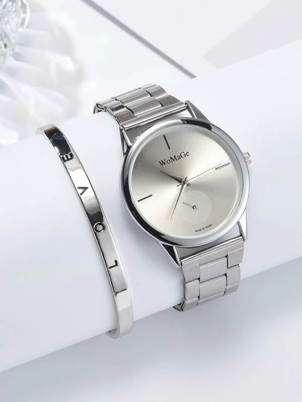 1 ชิ้น มินิมอล กลม Dial นาฬิกาข้อมือ & 1 ชิ้น สร้อยข้อมือ น-0151