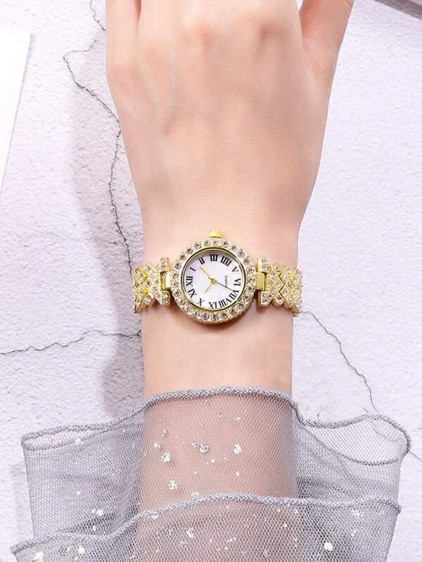 1 ชิ้น Rhinestone นาฬิกาควอตซ์และสร้อยข้อมือ 2pcs น-0176
