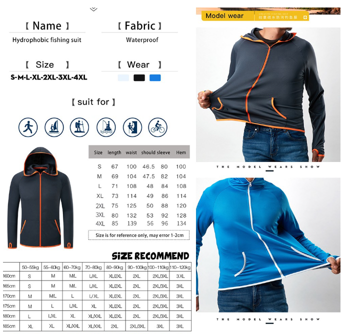 ■Ice silk Fishing Men Clothes Tech Hydrophobic Clothing Brand Listing Casual kleding Outdoor Camping Hooded Jackets ■Suit for:Fishing,Hiking,Hunting,Climbing,Cycling,and so on. ■Package:1pcs* Fishing Jacket