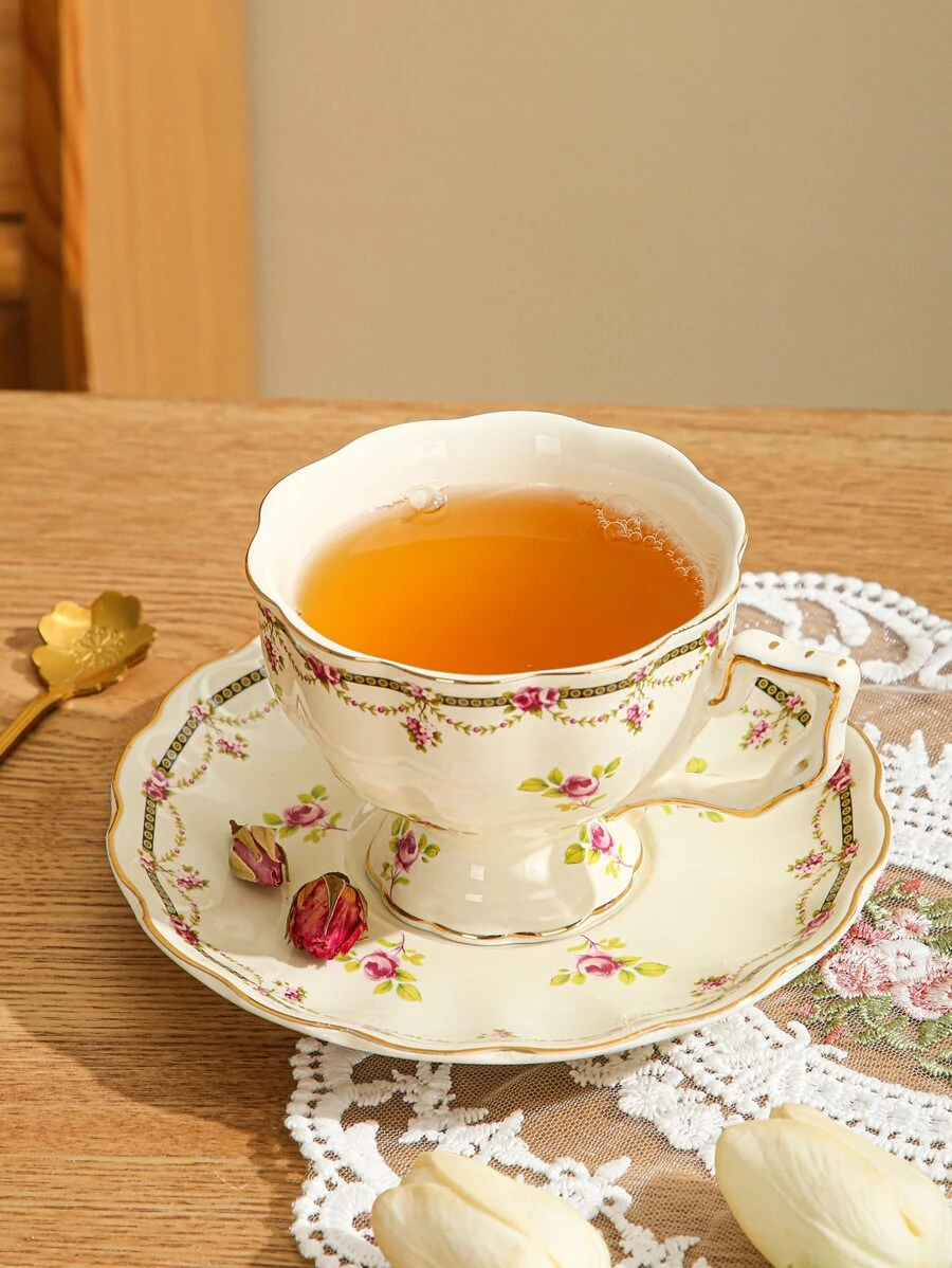 2 ชิ้น/เซ็ต แก้วมัค & ย้อนยุค ลาย ดอกไม้ แก้วกาแฟ & โต๊ะ จาน สำหรับ ออฟฟิศ oo-153