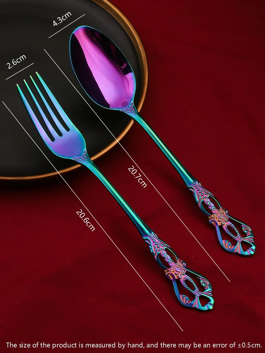 2 ชิ้นกลวงบรรเทาช้อนและส้อมชุด hh-72