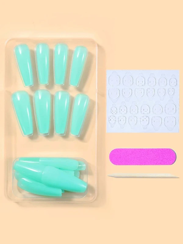 24 ชิ้น เล็บปลอม ทรงคอฟฟิน ยาว & ตะไบเล็บ 1 ชิ้น & เทป 1 แผ่น & แท่ง 1 ชิ้น c-49