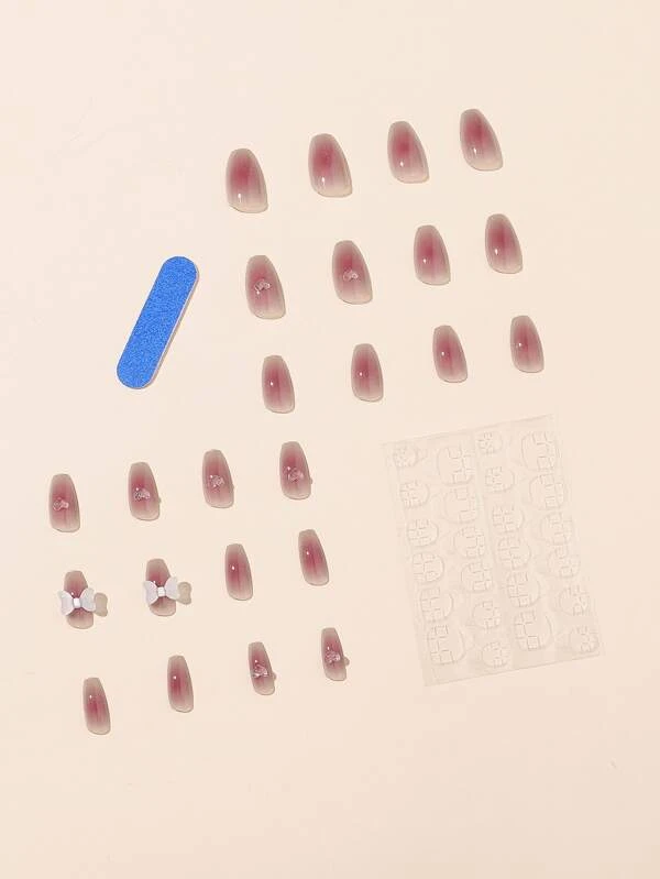 24 ชิ้น เล็บปลอม ทรงคอฟฟิน ยาว & ตะไบเล็บ 1 ชิ้น & เทป 1 แผ่น c-101