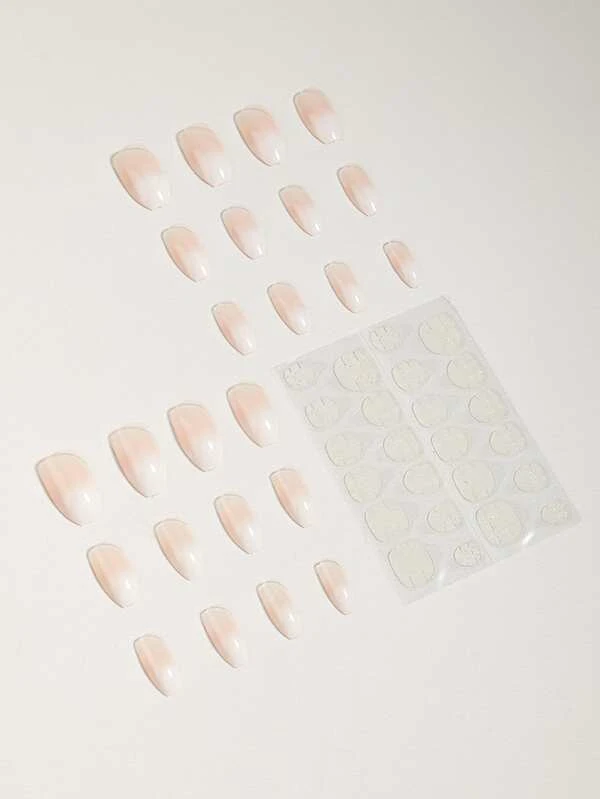 24 ชิ้น เล็บปลอม ทรงคอฟฟิน สั้น & ตะไบเล็บ 1 ชิ้น & เทป 1 แผ่น c-20