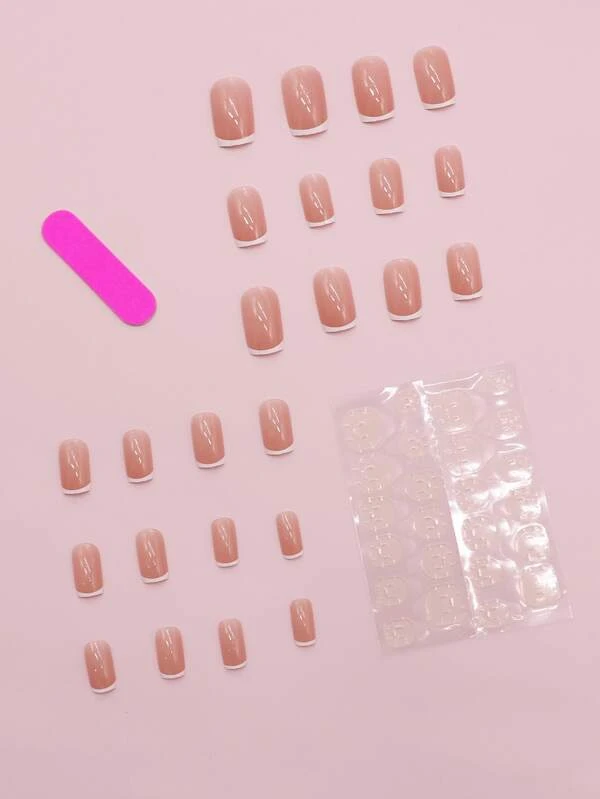 24 ชิ้น เล็บปลอม ทรงเหลี่ยม สั้น & ตะไบเล็บ 1 ชิ้น & เทป 1 แผ่น c-25