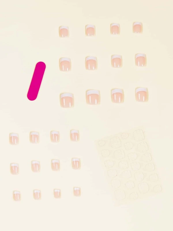 24 ชิ้น เล็บปลอม ทรงเหลี่ยม ยาว & ตะไบเล็บ 1 ชิ้น & เทป 1 แผ่น c-31