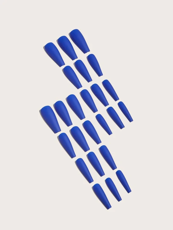 24 ชิ้น เล็บปลอม ทรงคอฟฟิน ยาว & ตะไบเล็บ 1 ชิ้น & เทป 1 แผ่น c-40