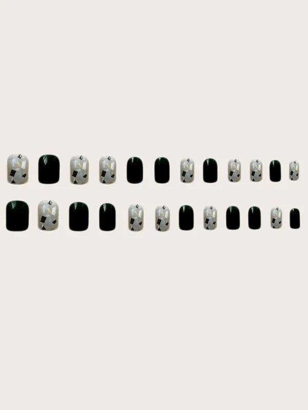 24 ชิ้น เล็บปลอม ทรงเหลี่ยม สั้น & ตะไบเล็บ 1 ชิ้น & เทป 1 แผ่น c-51