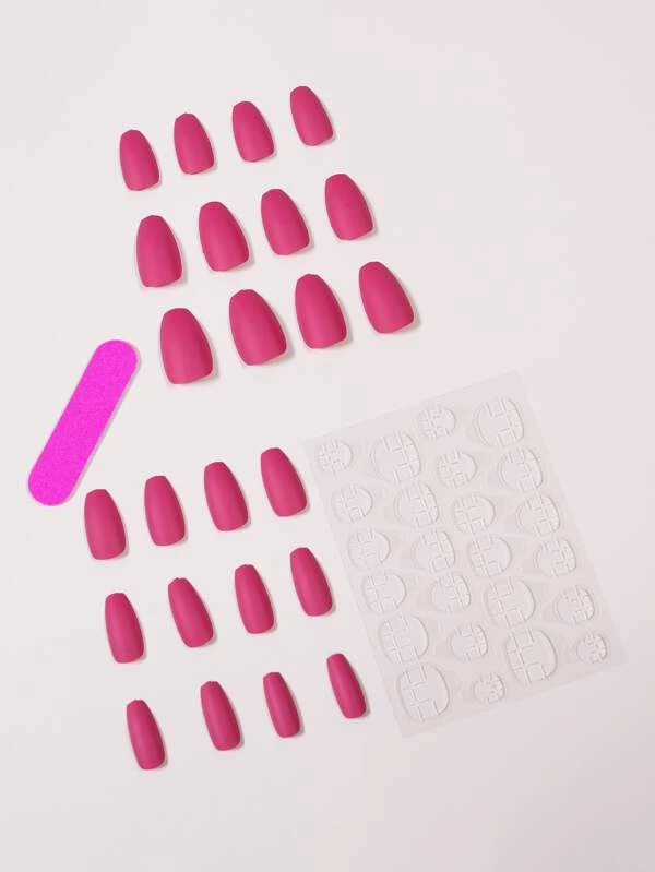 24 ชิ้น เล็บปลอม ทรงคอฟฟิน ยาว & ตะไบเล็บ 1 ชิ้น & เทป 1 แผ่น c-94