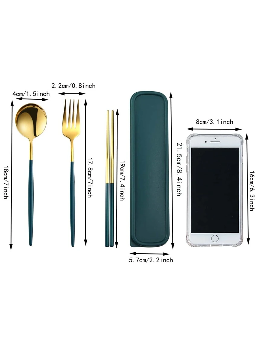 3 ชิ้น สแตนเลส ชุดช้อนส้อมมีด & 1 ชิ้น กล่อง hh-6