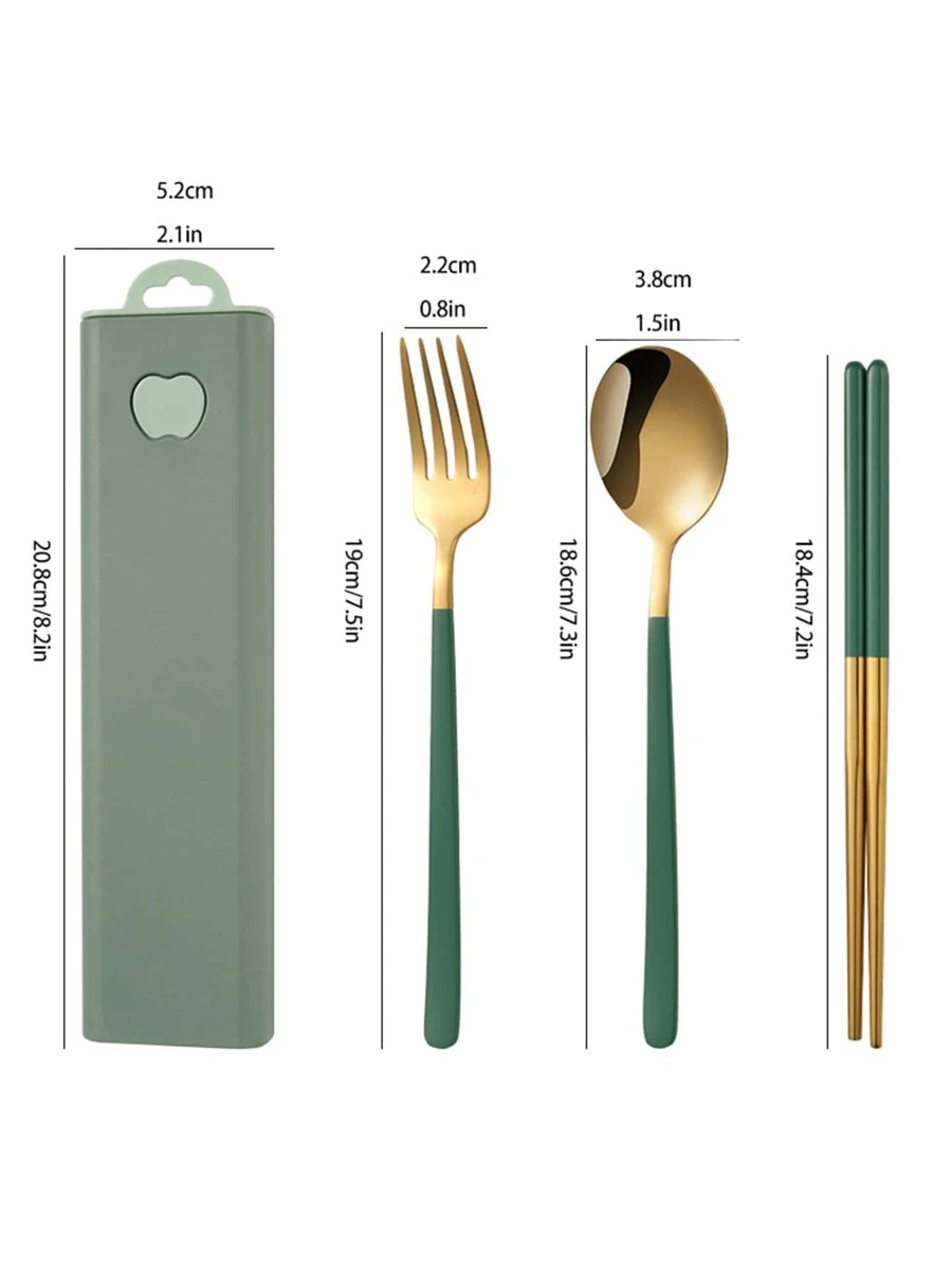 4 ชิ้น ทูโทน สีสุ่ม ชุดช้อนส้อม & 1 ชิ้น กล่องเก็บของ hh-34