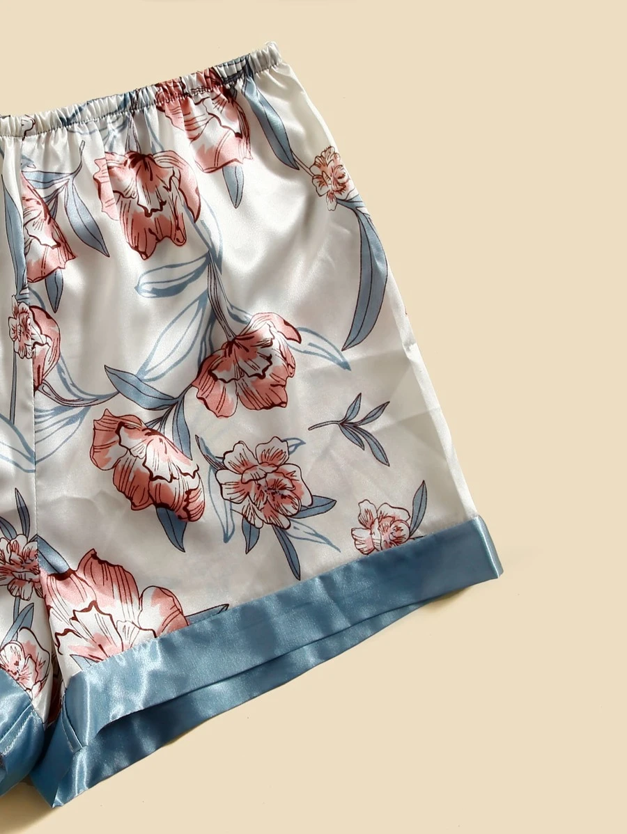 5 ชิ้น ลายดอกไม้ เข็มขัด ผ้าซาติน เสื้อคลุมยาว & เสื้อท็อปสายเดี่ยว & ชุดนอน & กางเกงขายาว & กางเกงขาสั้น bb-88