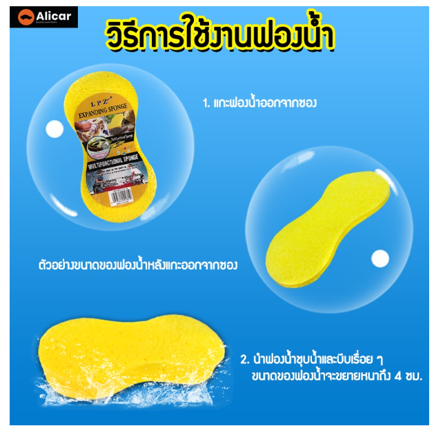 3. ฟองน้ำล้างรถขนาด 24x11x4 ซม. สุ่มสี จำนวน 1 ชิ้น