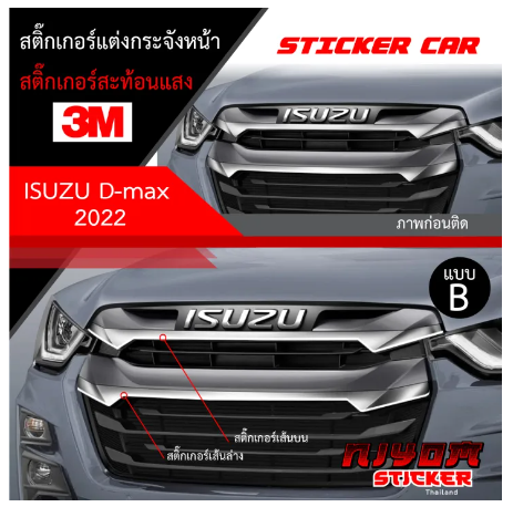 สติ๊กเกอร์สะท้อนแสง 3M ติดกระจังหน้า ISUZU D-max 2022 อุปกรณ์แต่งรถ รถยนต์ รถกระบะ ดีแมคซ์ 2022 Car Stickers