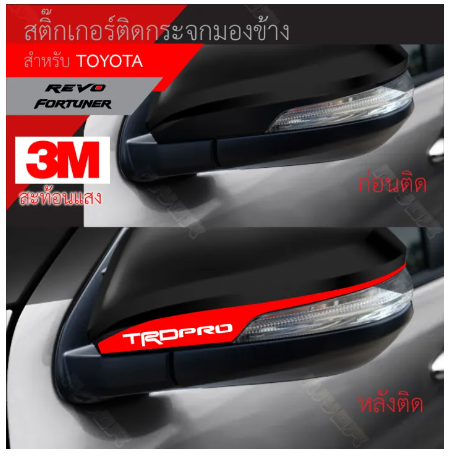 สติ๊กเกอร์ติดรถ 3m สะท้อนแสง TOYOTA ติดกระจกมองข้าง ซ้าย-ขวาเป็นสติ๊กเกอร์สำหรับภายนอกโดยเฉพาะ ตัดประกอบโดยช่าง สีไม่ลอก 100% เพราะไม่ใช่งานพิมพ์ทนต่อการขีดข่วน ล้างรถ หรือสารเคมีอื่นๆ ทนความร้อนได้สูงโดยไม่ยืด กาวไม่เยิ้มใช้สติ๊กเกอร์ติดรถอย่างดี เกรดพรีเมี่ยมใช้ติดเพื่อความสวยงามของยานยนต์เป็นสติ๊กเกอร์สะท้อนแสง 3m กันแดด กันน้ำ 100%